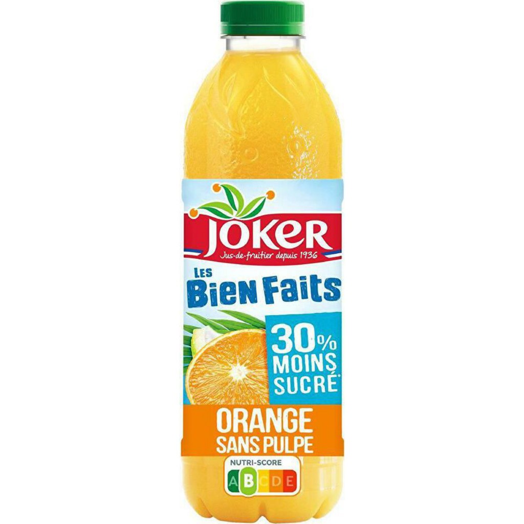 Les Biens Faits Joker Jus orange sans pulpe 30% moins sucré 90 cl