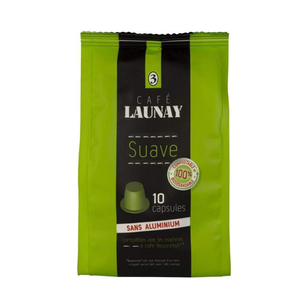 LAUNAY Café capsules Compatibles Nespresso Suave biodégradables (10 capsules)